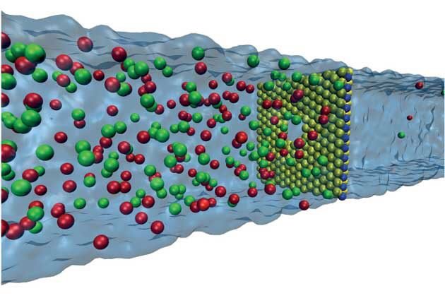 A membrana positivamente carregada permite a passagem de íons negativos e vice-versa. Esta tecnologia ainda está em fase de pesquisa e vários materiais de membranas com espessura nanométrica estão sendo estudados.