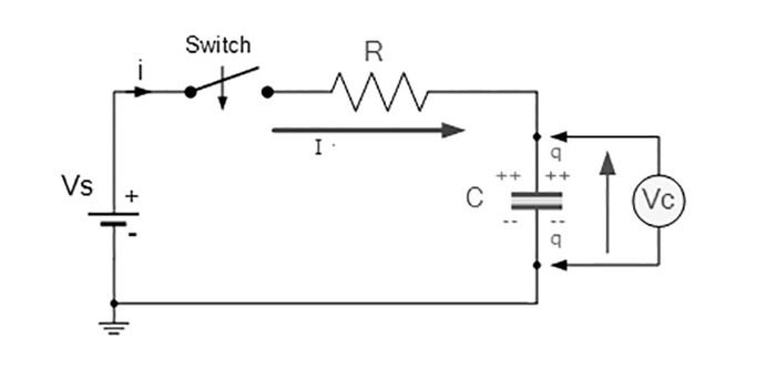 V_{C}(t)=V_{f}(1-e^{\frac{-t}{\tau}})