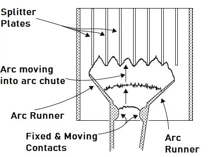 Inside the chamber, there are metallic splitter plates, which divide and dissipate the arc when the contacts separate from each other.